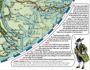 Du haut des arbres ou des clochers, il dresse des cartes des environs qui forçent l’admiration de son entourage et d’érudits locaux : instituteur, curé, médecin de famille. Des décennies plus tard, l’artiste constate avec malice qu’il utilisait déjà à ce moment-là, bien avant l’invention du GPS ou l’usage de la photographie aérienne, les mêmes méthodes que les cartographes du XVIIIe siècle.