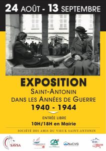 Pour marquer le quatre-vingtième anniversaire de la Libération de la France en août 1944, l’exposition retrace les grandes étapes et les évènements saillants survenus à Saint-Antonin durant les années de la guerre. Avec le livre publié en même temps, elle est le résultat d’un très important travail d’étude des documents disponibles (archives communales de Saint-Antonin, dossiers constitués par le Comité d’Histoire de la 2ème guerre mondiale et conservés aux Archives départementales de Tarn-et-Garonne), travail mené durant des mois par un petit groupe passionné constitué d’adhérents de la SAVSA. À ce premier noyau de sources se sont rajoutés de nombreux documents confiés par des habitants de la commune et qui racontent l’histoire de leur famille, ainsi que plusieurs séries exceptionnelles d’objets originaux de la période de la guerre prêtés par des collectionneurs privés.