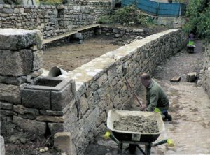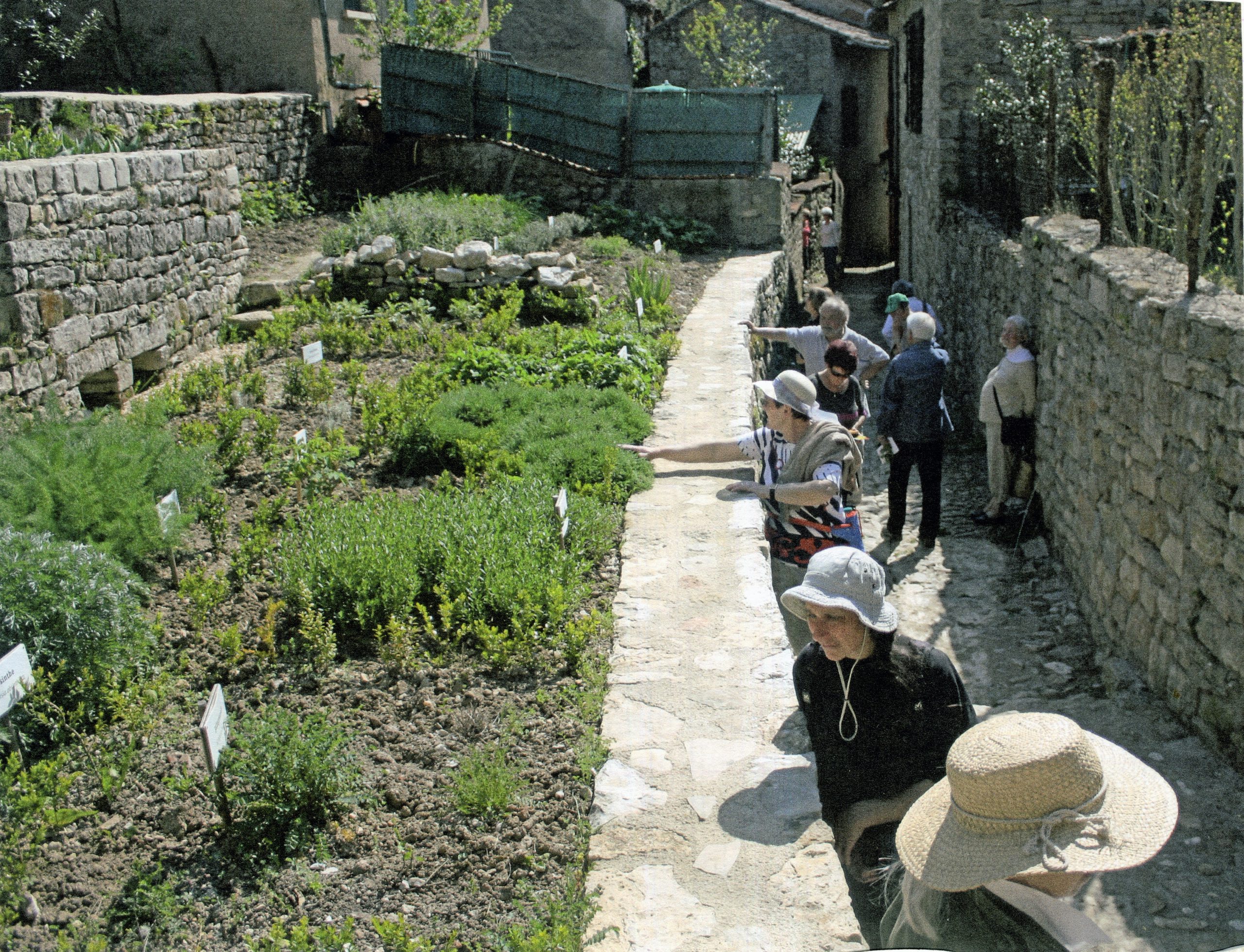 Le choix se porte sur un petit terrain vide suite à la démolition de trois maisons exiguës. Avec l’accord et le soutien de la commune, les travaux commencent par un énorme chantier de nettoyage et de déblai d’un monceau de détritus, de gravats et de pierres. De la bonne terre est apportée et les plantations réalisées en faisant appel aux habitants qui possèdent les espèces souhaitées : des buis pour délimiter les carrés, des plantes aromatiques condimentaires, appelées « simples », des pivoines rouges à fleurs simples, des rosiers de Damas si parfumés. Une petite équipe s’active sans compter sa peine, formée de Pierre-Noël Frileux et Loulou Fournier, aidés par Bernard Vignes, Marianne Martinez et Jean-Luc Alary qui réalise notamment la réfection du mur de soutènement. Le chantier dure deux ans et le jardin est inauguré par le maire Gérard Agam le 24 juin 2010. Les habitants et les touristes affluent pour le visiter.
