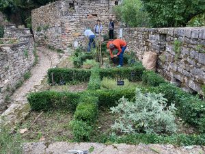 En 2025, une nouvelle restauration s’impose, et le cercle des jardiniers de la Savsa s’y est attelé. Pour la mener à bien, la Savsa a déposé un dossier de candidature à l’appel à projet participatif de la commune, qui a été classé 2ème à la suite du vote des habitants. La dotation obtenue permet de financer les matériels – comme les plessis de bois pour remplacer les buis – et les fournitures nécessaires au nouveau chantier, la mobilisation des jardiniers bénévoles et de membres de l’équipe sentiers apporte les forces vives pour mener à bien les travaux. Rendez-vous au printemps 2026 pour cette nouvelle vie du jardin médiéval !