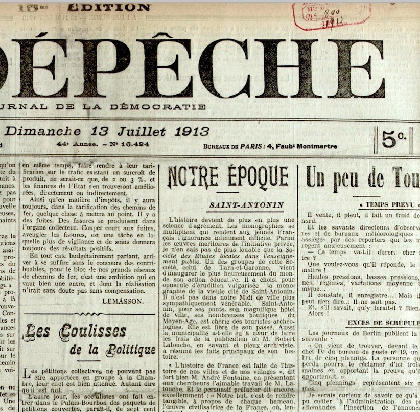 Lien pour le texte en version doc. 1913_07_13 La Depeche Saint-Antonin